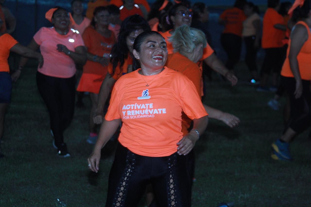 La luna brillaba en todo su esplendor sobre el corazón de la Riviera Maya y desde los primeros acordes, los asistentes mostraron una gran actitud, los instructores del programa subían al escenario para dirigir los movimientos, esta reunión se realiza el día 25 de cada mes, y es un día para actuar, generar conciencia y prevenir la violencia contra mujeres y niñas, en el Municipio de Solidaridad se realiza una mega clase de activación física, baile fitness y funcional para compartir el mensaje a la ciudadanía.
