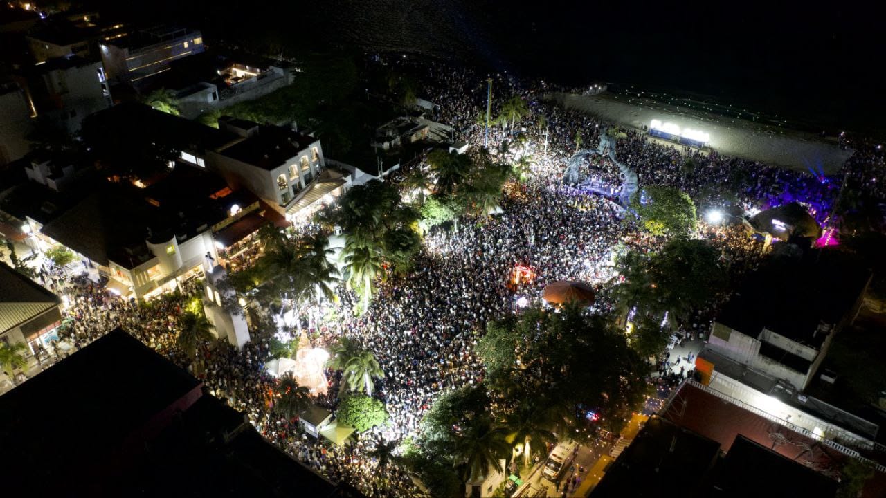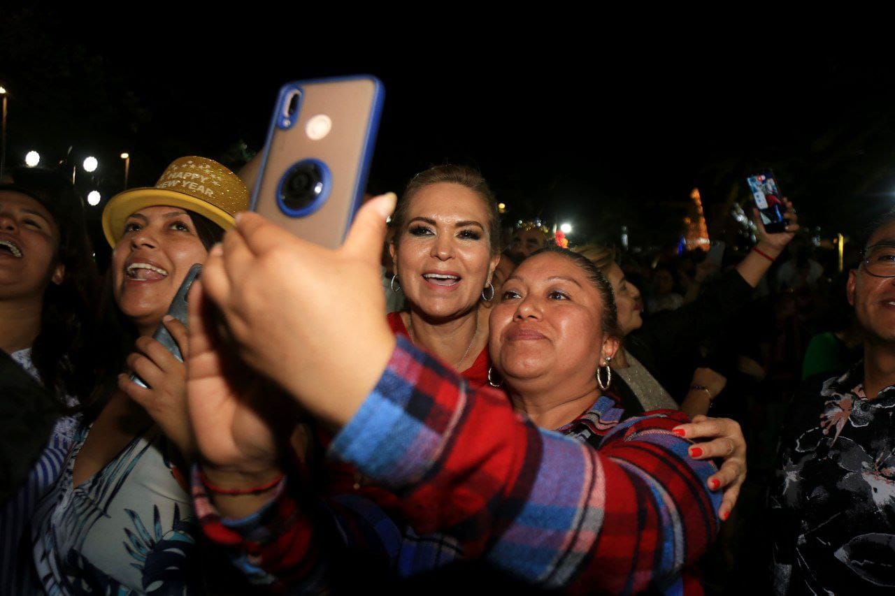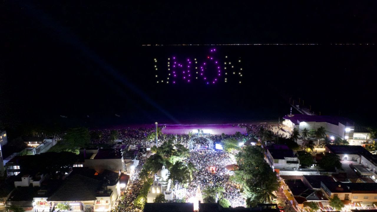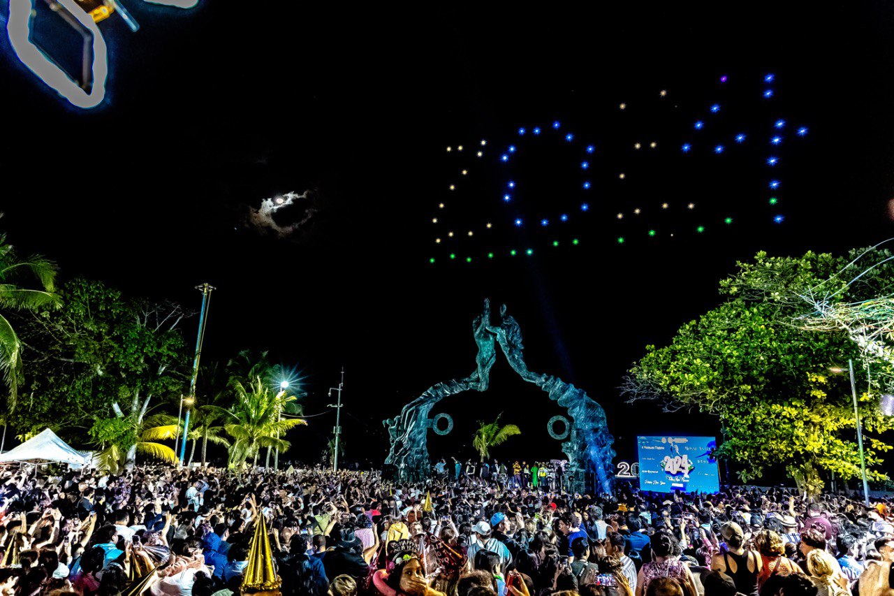 En el Portal Maya, el mariachi Azul Turquesa amenizó este importante evento donde la cantante Karenka, cantó dos canciones del regional mexicano, ‘Cielito lindo’ y ‘El Rey’. Al dar las 12:00 pm un espectacular show de luces y drones iluminaron el cielo con palabras como unión, amor, feliz año nuevo, en diferentes idiomas.