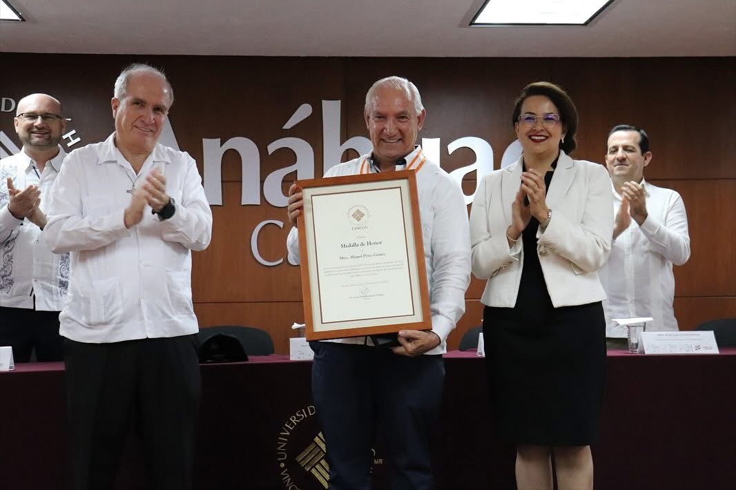 En una noche especial se celebró una historia de liderazgo, dedicación y compromiso en la ceremonia de entrega de la Medalla de Honor al Mtro. Miguel Pérez, rector fundador de la Universidad Anáhuac Cancún, hoy rector de la Universidad del Mayab.