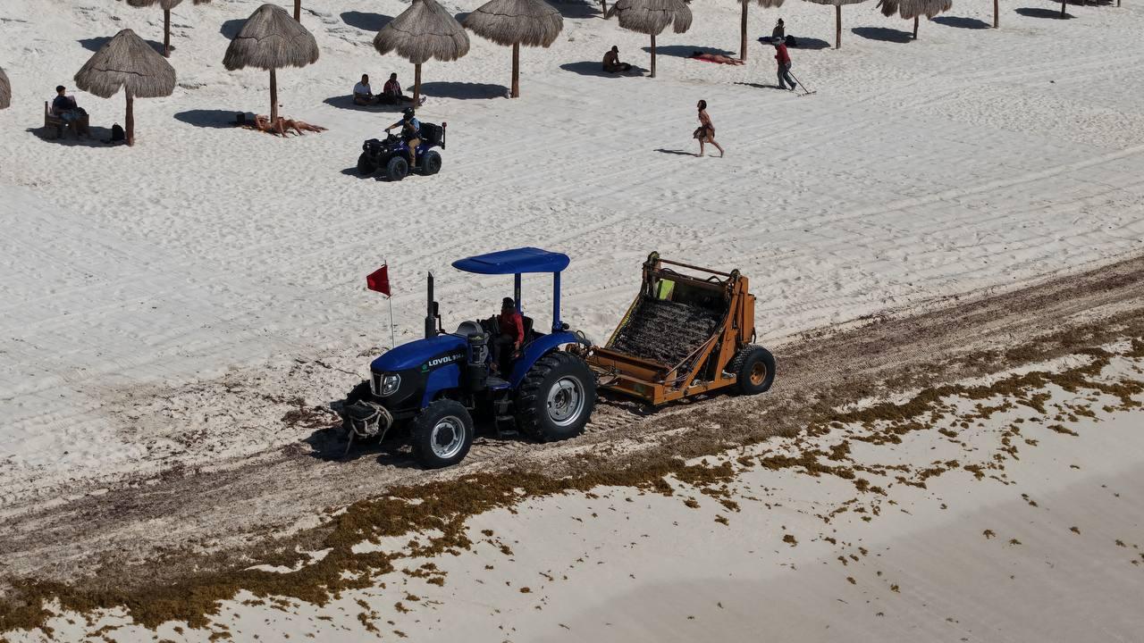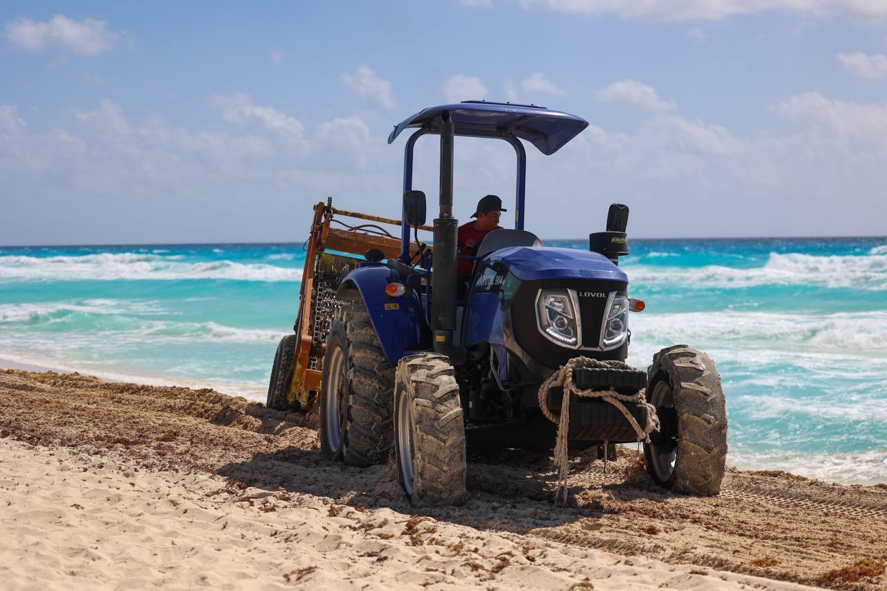 Refuerzan acciones para recolección de sargazo en playas de Cancún. Mil 877.05 metros cúbicos recolectados durante el 2025