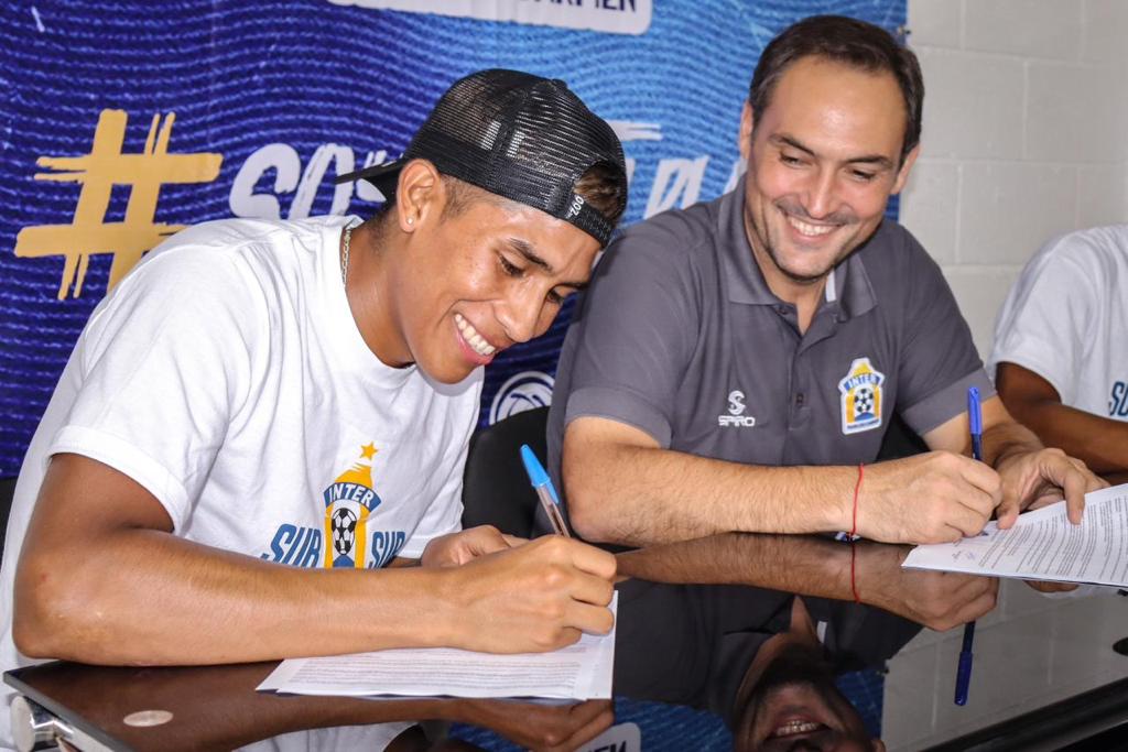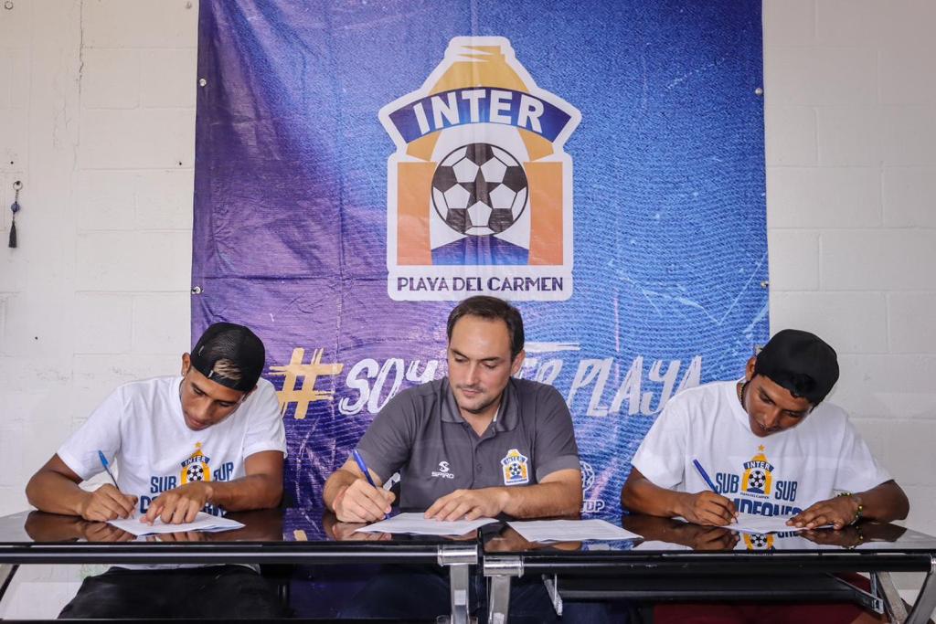 Playa del Carmen, Solidaridad, a 4 de Julio de 2023.- Fue este martes al filo del medio día, cuando en la sede administrativa del Club Inter Playa del Carmen renovaron Lucio Carmona y Brayam Blancas como delantero y medio respectivamente del equipo gigante de Quintana Roo.