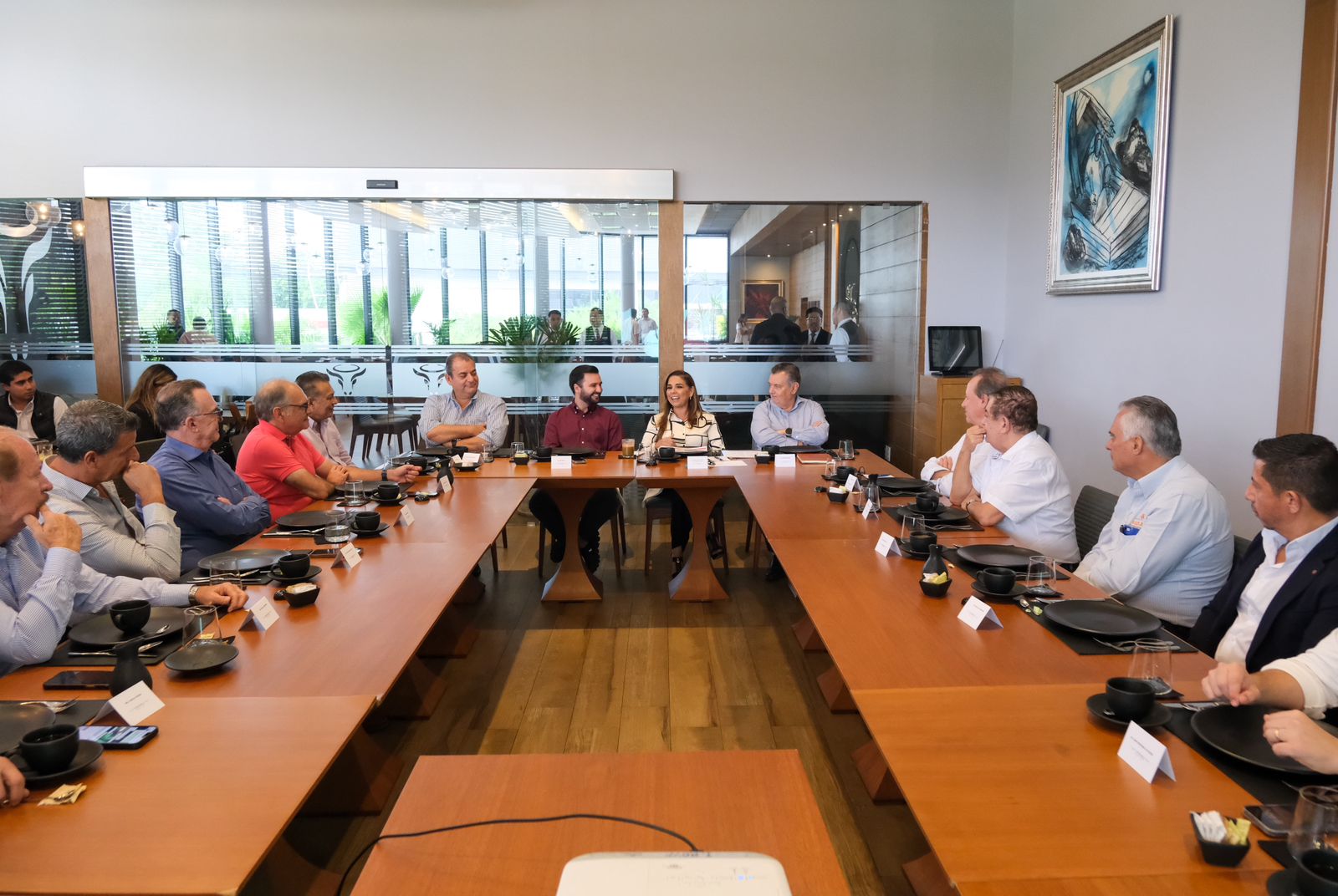 Cancún.- La gobernadora Mara Lezama Espinosa se reunió con empresarios quintanarroenses que reconocieron, avalaron y manifestaron su confianza para seguir impulsando proyectos a través del programa Estímulo Fiscal al Deporte de Alto Rendimiento (EFIDEPORTE) que el año pasado generó una bolsa de 96 millones de pesos para rehabilitar instalaciones deportivas.