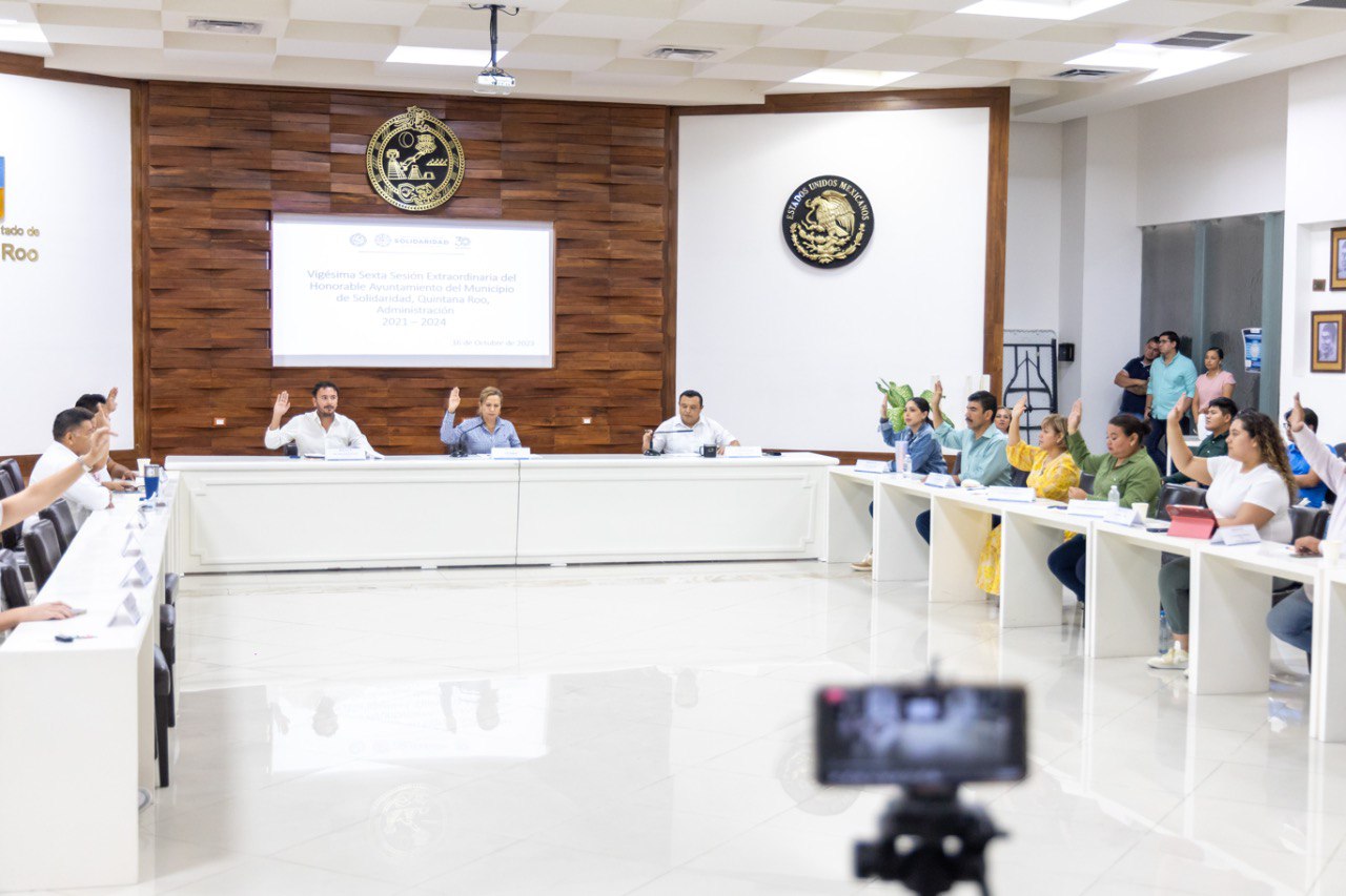 Playa del Carmen, Solidaridad, 17 de octubre del 2023.- Durante la vigésima sexta sesión extraordinaria del Cabildo presidida por la edil Lili Campos, se aprobó otorgar poder especial a favor de Javier Cal López para representación del Ayuntamiento en materia laboral y de amparo, para garantizar la defensa de los derechos e intereses de las y los trabajadores.
