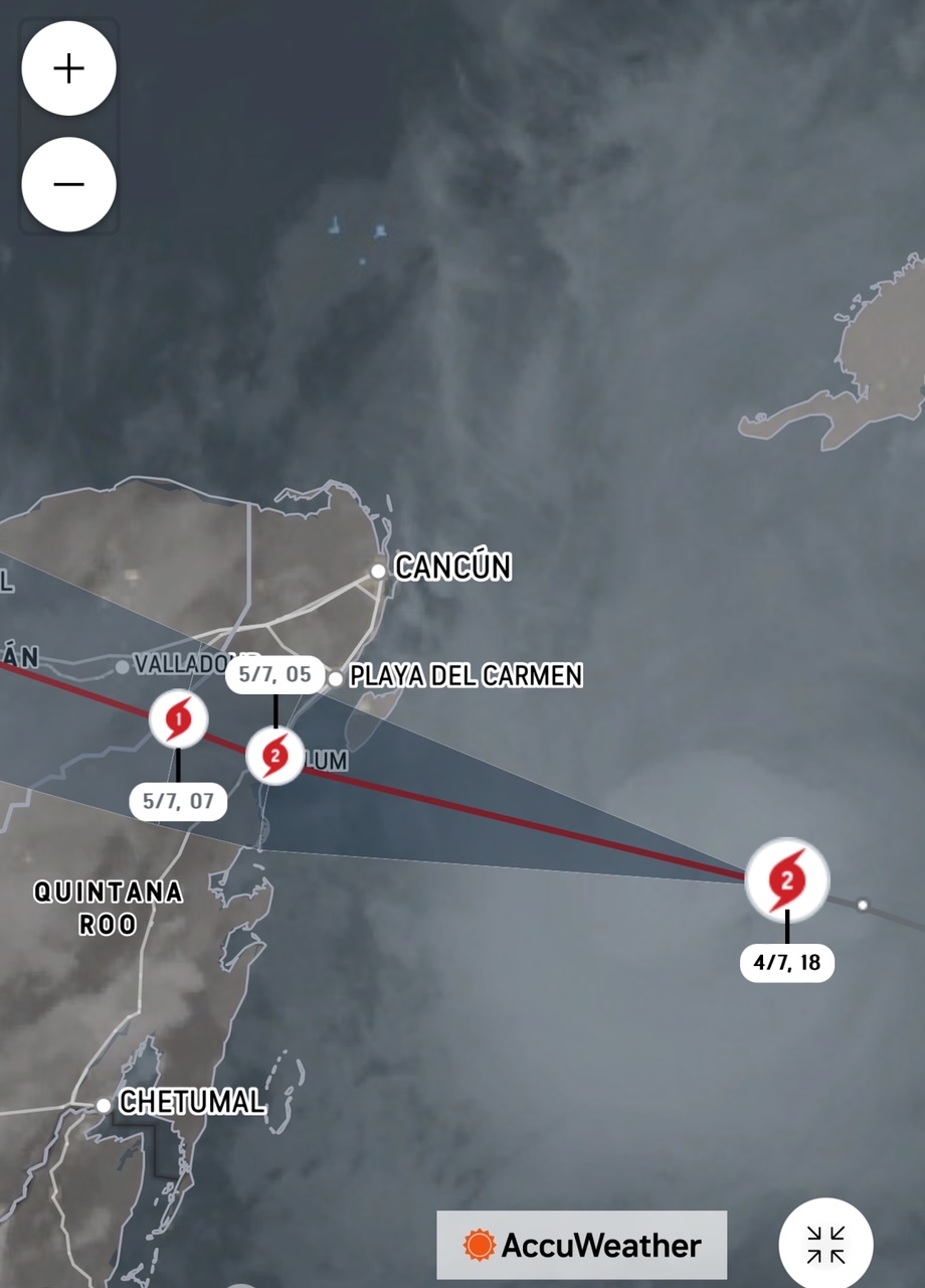 Cancún.- Al entrar Quintana Roo en la fase de Alerta Roja, peligro máximo, por la presencia del huracán “Beryl” con categoría 2, la gobernadora Mara Lezama declaró que el estado se encuentra totalmente preparado para afrontar los embates de este fenómeno hidrometeorológico.