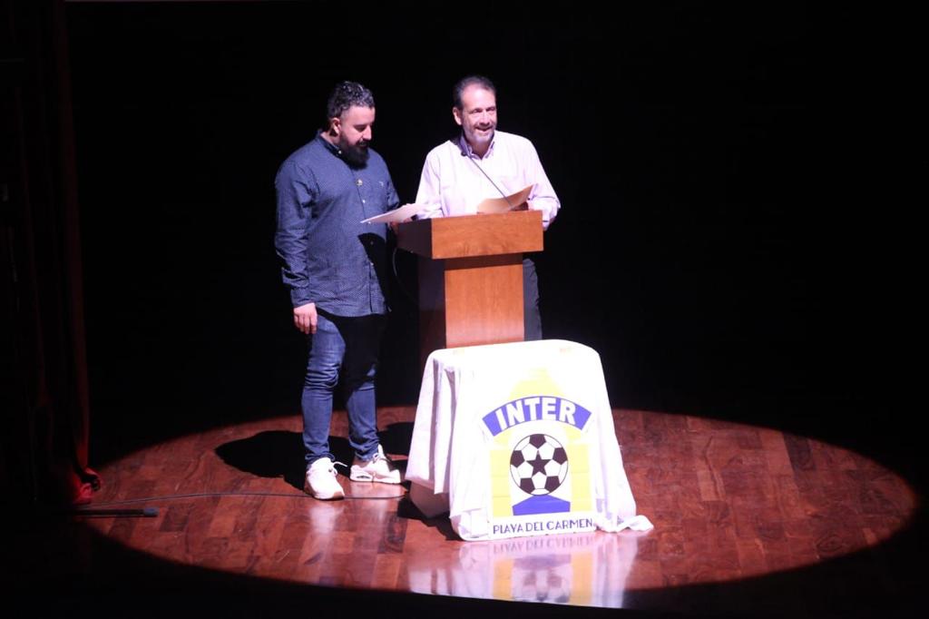 PLAYA DEL CARMEN, Q. ROO a 3 de agosto.- El moderno y funcional Teatro de la Ciudad de Playa del Carmen fue la sede donde este jueves el Club Inter Playa del Carmen tuvo la presentación oficial de sus equipos tanto de Liga Premier, como de la Liga de Tercera División Profesional (TDP), los cuales están próximos a iniciar la temporada 2023-2024. Así mismo se reconoció el logro más reciente de la institución, con el campeonato conseguido por el conjunto de la Sub-15 en la Liga Nacional Juvenil.