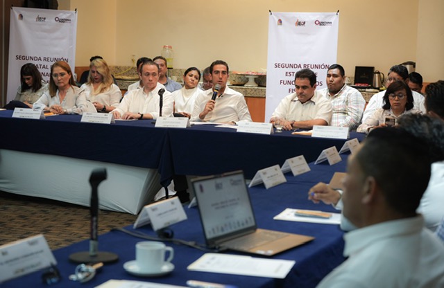 Chetumal.- En el marco de la segunda reunión de funcionarios fiscales estatales que se llevó a cabo en la ciudad capital del estado, presidida por el Secretario de Finanzas y Planeación, Eugenio Segura Vázquez, acompañado por el titular de SATQ, la Subsecretaria de Ingresos; la Procuradora Fiscal y los tesoreros de los 11 municipios del estado, se realizó la Aprobación de Reglamento de los Órganos del Sistema Estatal de Coordinación Fiscal y Reglas de Integración y Operación de los Grupos del Sistema Estatal de Coordinación Fiscal.