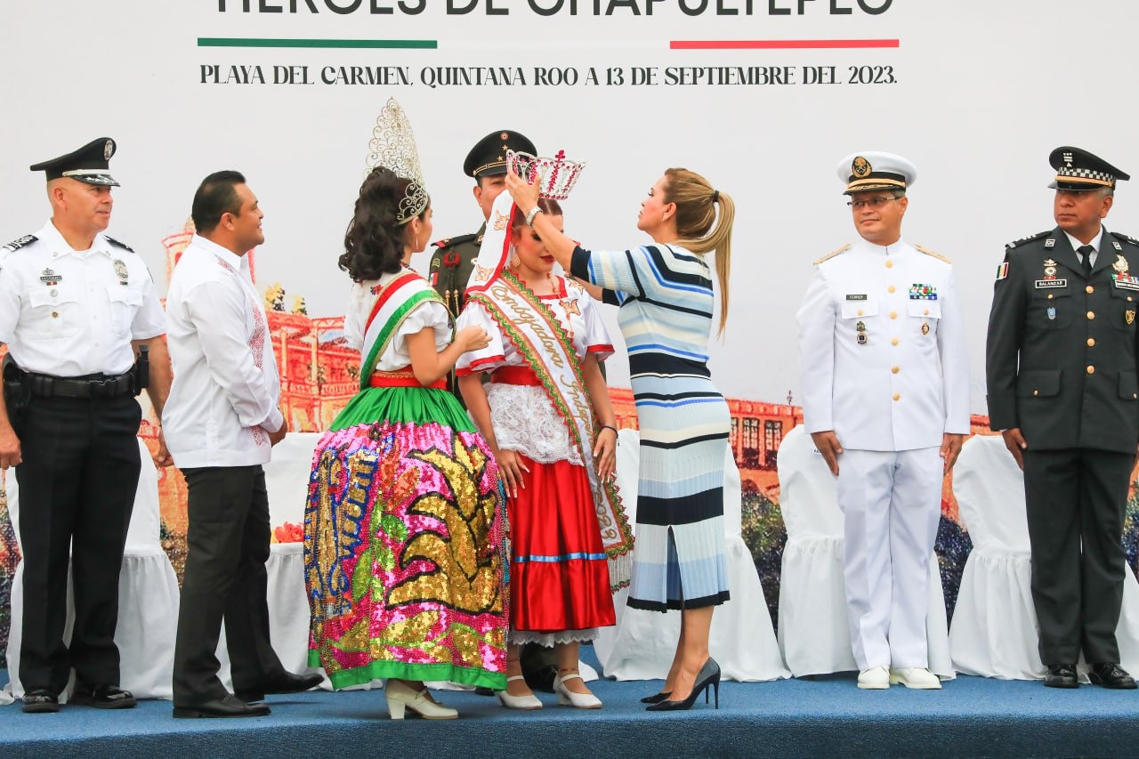 Playa del Carmen, Solidaridad, 13 de septiembre del 2023.- En conmemoración del 176 aniversario de la gesta heroica de los Niños Héroes de Chapultepec, el gobierno municipal que dirige Lili Campos realizó un acto cívico militar y ofrenda en su honor, en la avenida Heroico Colegio Militar, para fomentar el sentido patriótico en las y los solidarenses.