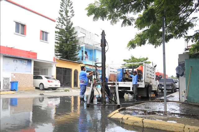 Trabaja gobierno en el desazolve de pozos en Playa del Carmen