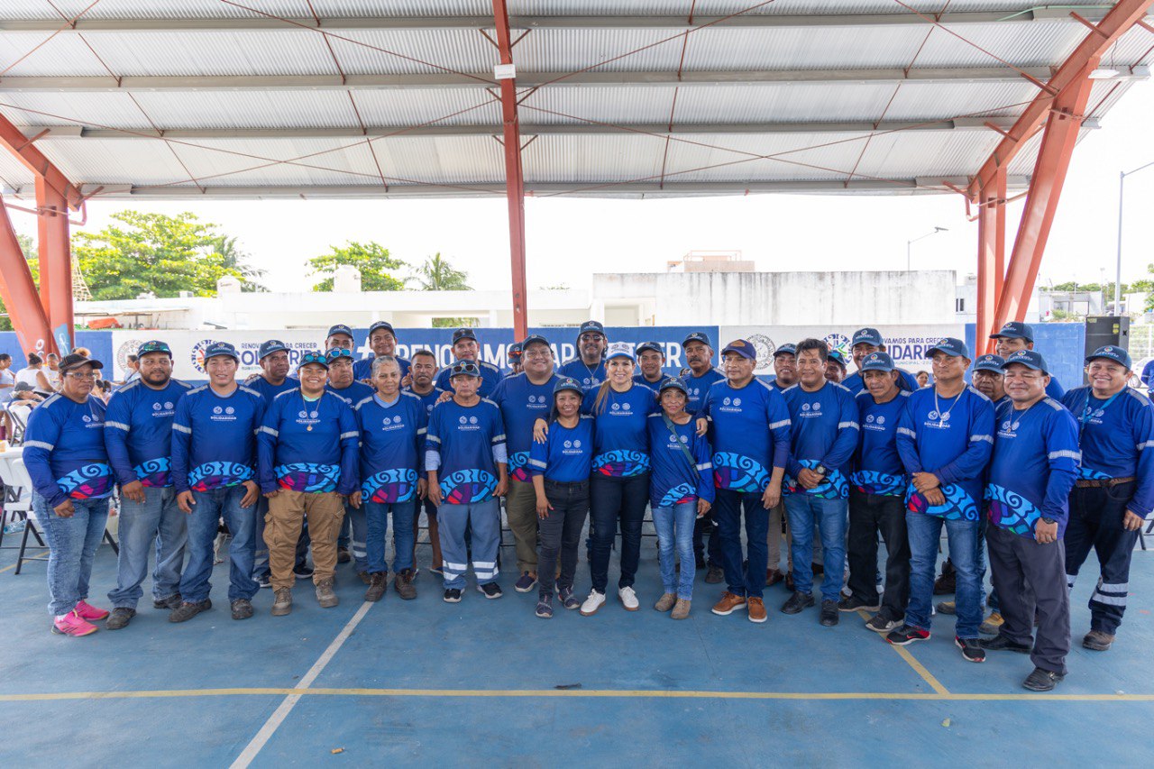 Playa del Carmen, Solidaridad a 12 de octubre del 2023.- Mejorando las condiciones de trabajo del personal de servicios públicos de la alcaldía de Puerto Aventuras, la presidenta Lili Campos les entregó uniformes cómodos, los cuales son de mayor calidad y protección contra las inclemencias del tiempo.