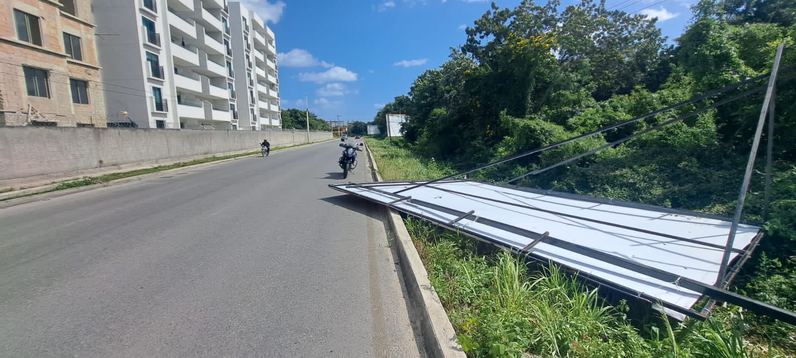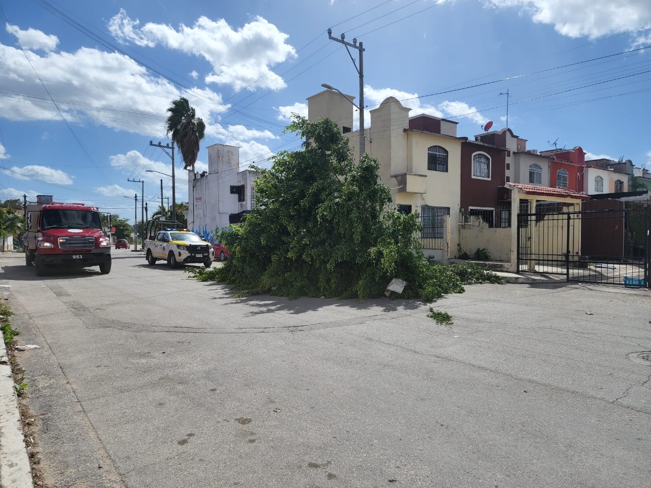 En tanto, en la Av. Ciénega en la Región 200 un árbol resultó derribado por el viento; se han detectado 3 espectaculares que se encontraban tirados sobre la vía de rodamiento en la Av. 135 con Av. Huayacán, en la Av. Cobá con Av. La costa y el último en la Av. Lak’In con Av. Margarita en donde un poste de electricidad también sufrió afectaciones.