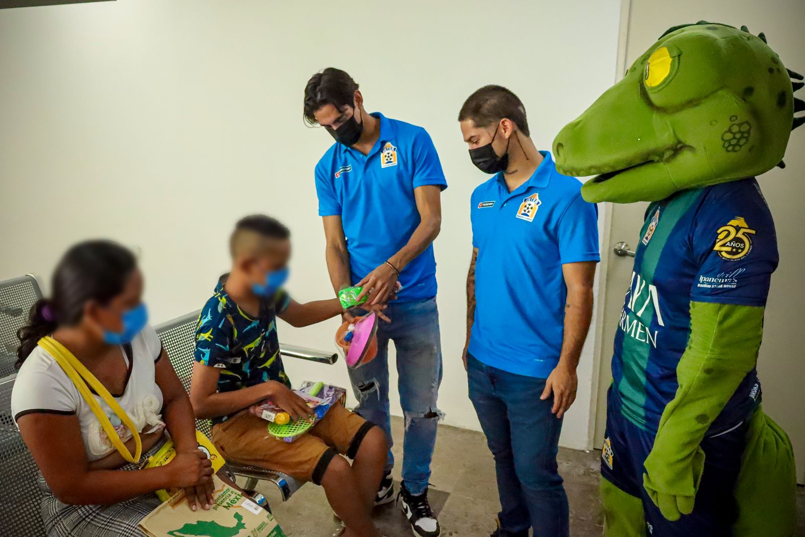 • Los jugadores del Inter Playa del Carmen de Liga Premier, recorrieron el Hospital General para obsequiar juguetes a niñas y niños internados en dicho sanatorio, así como pasar un momento de calidez y brindar un mensaje de aliento y esperanza a sus familiares.