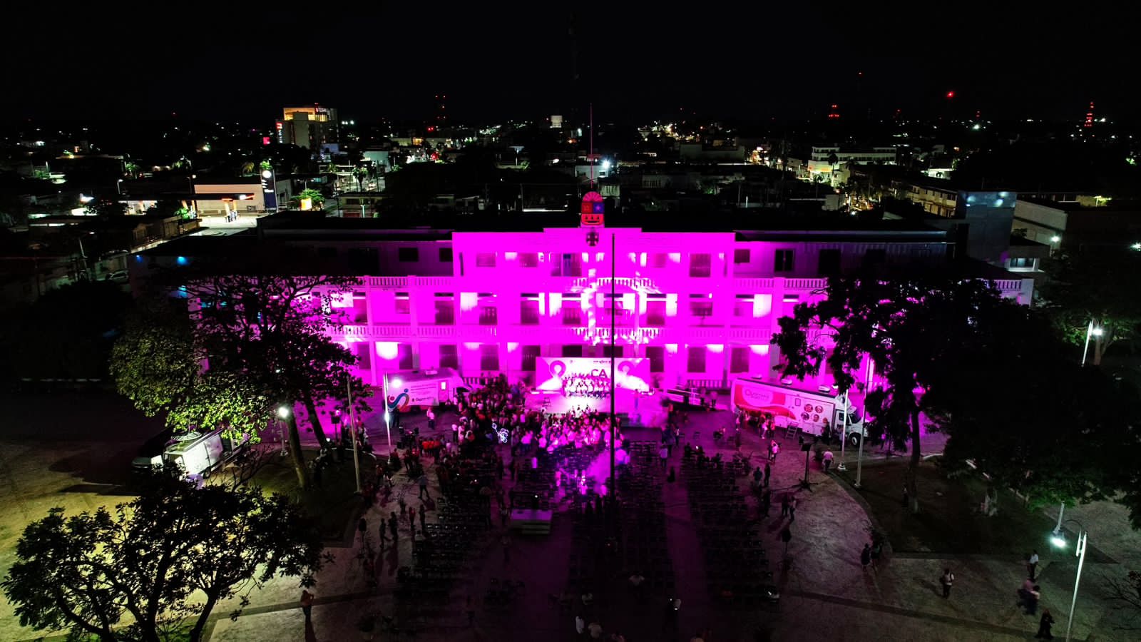 Chetumal.- La gobernadora Mara Lezama presidió el encendido de luces color rosa en Palacio de Gobierno, en el marco de las actividades de Octubre, mes de la sensibilización sobre el cáncer de mama e hizo un llamado a las mujeres a realizarse la autoexploración.